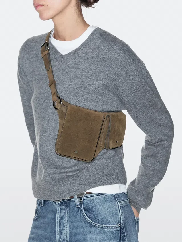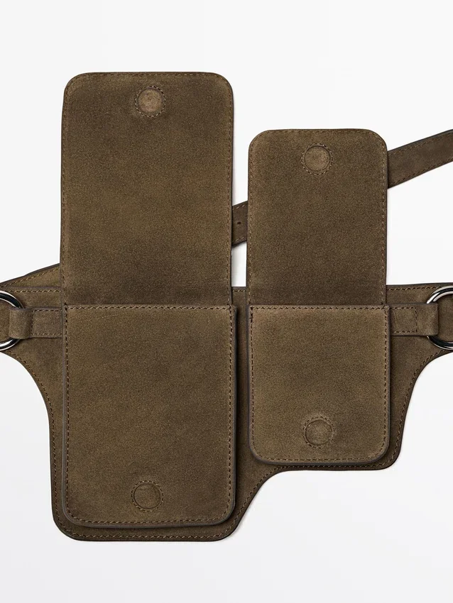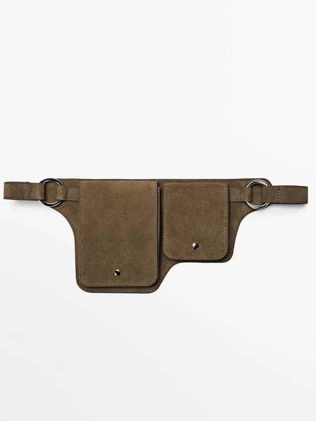 Gürteltasche aus Spaltleder mit zwei Fächern