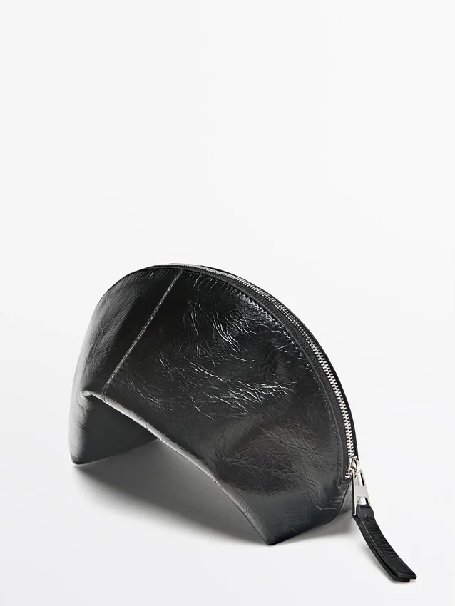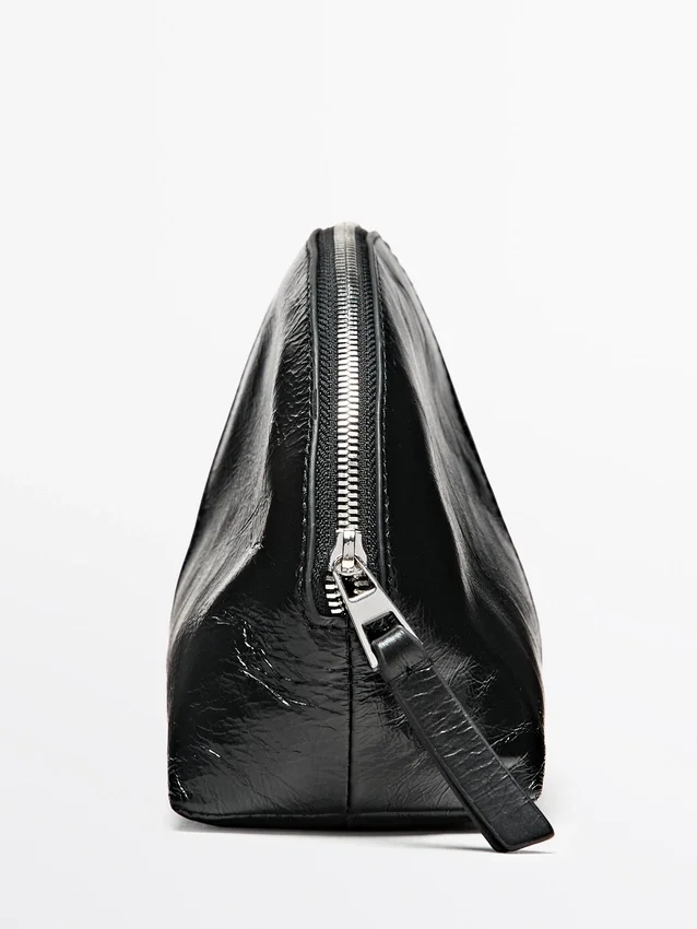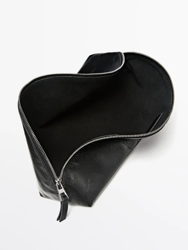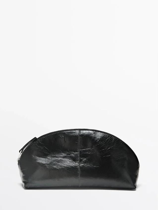 Kulturbeutel aus Rindsleder mit Nappaleder-Finish. Reißverschluss.