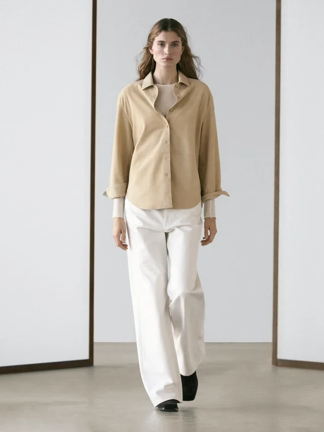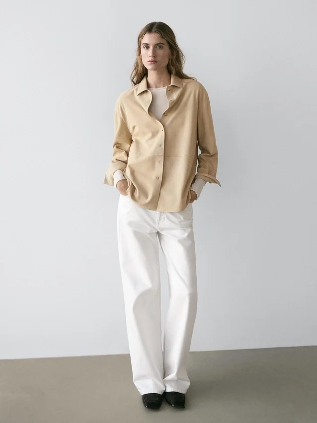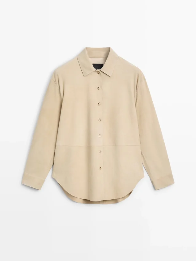 Hemd aus Ziegenleder mit Wildleder-Finish. Lange Ärmel mit geknöpften Manschetten. Hemdkragen. Gefüttert. Nahtdetails .