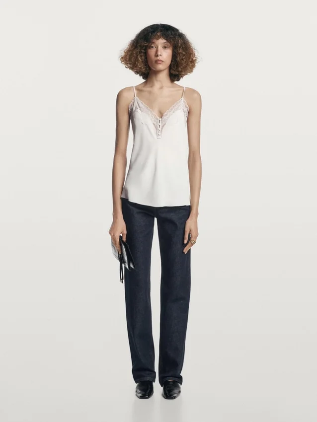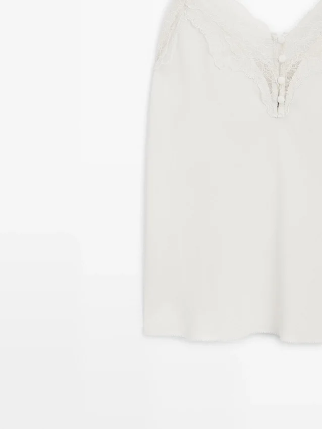 Trägerhemd. Träger. Spitzendetails. Verdeckte Knöpfe.