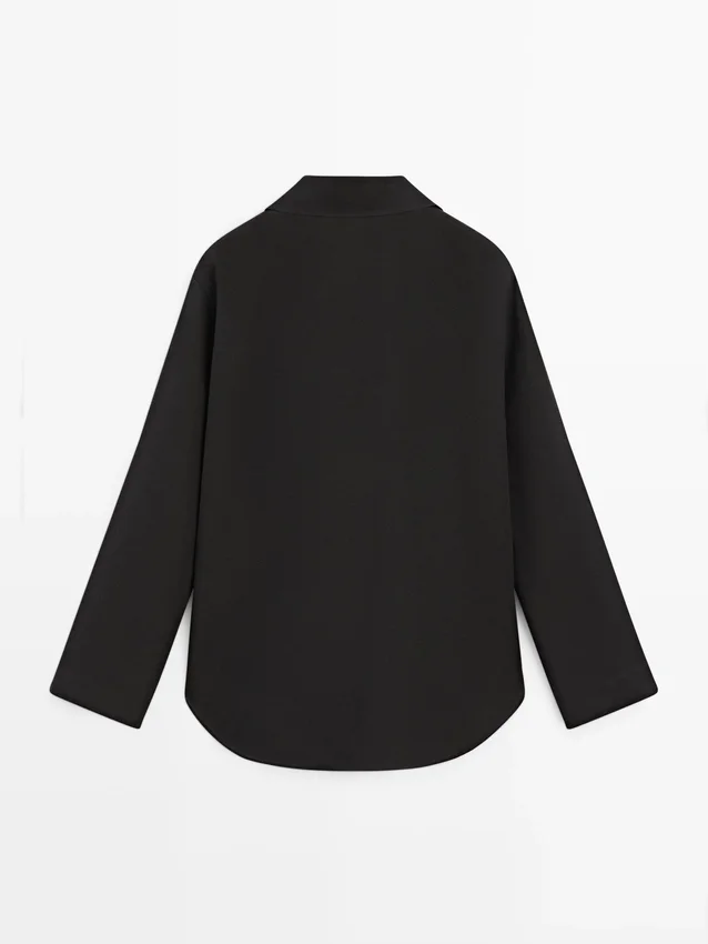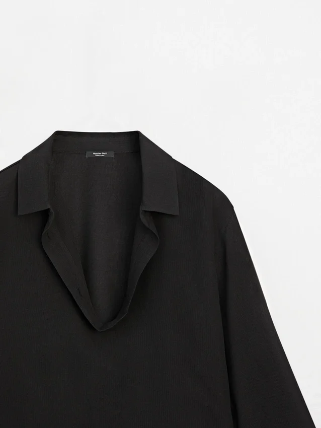 Hemd aus einem Baumwollmischgewebe. Lange Ärmel mit geknöpften Manschetten. Kragen mit spitzem Revers.