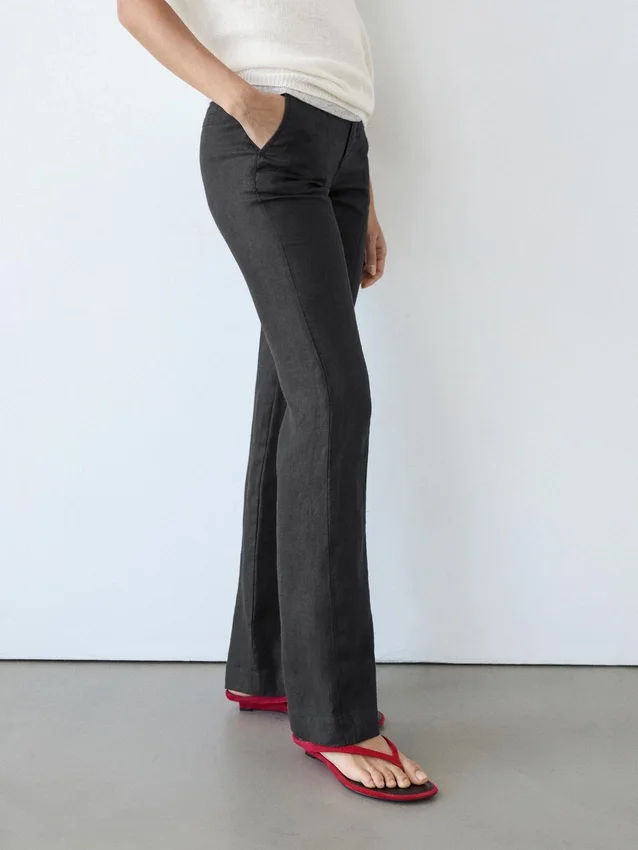 Kick-Flare-Fit-Hose: Leicht ausgestellt und knöchellang. Reißverschluss und Haken-und-Ösen-Verschluss mit innenliegendem Knopf. Zwei Seitentaschen. Zwei Leistentaschen auf der Rückseite. Mittige Nahtdetail. Aus 100 % Leinen.Materialzusammensetzung