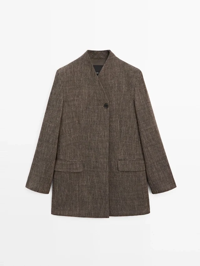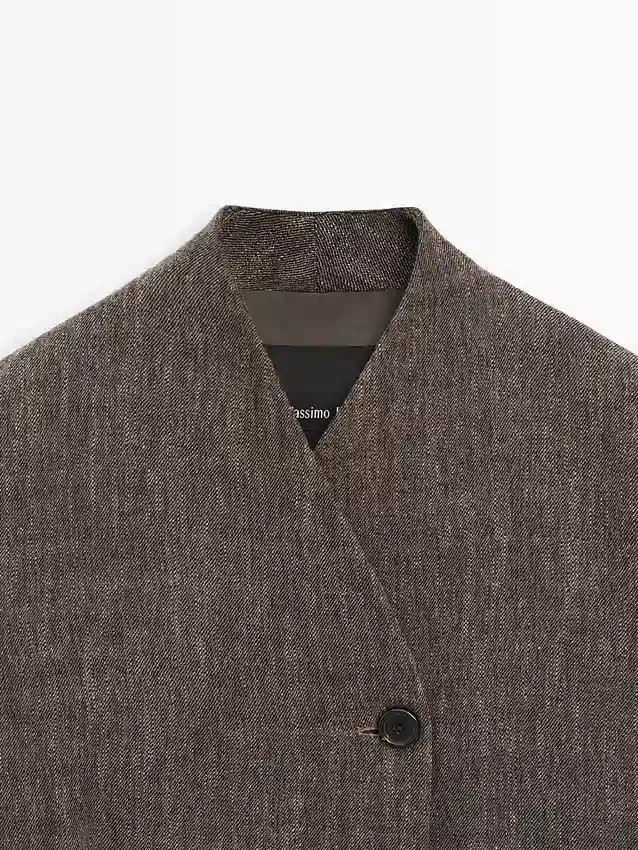 Kurzer Mantel aus Wollmischgewebe. Hoher Kragen. Zwei Seitentaschen. Gefüttert. Finish mit Fleckeneffekt.