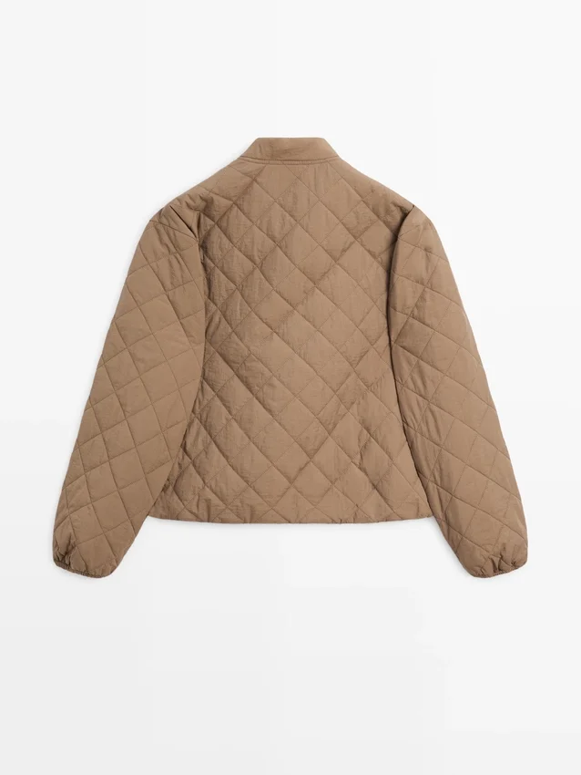 Jacke mit leichter Wattierung. Stehkragen. Lange Ärmel. Knopfleiste vorne. Zwei Pattentaschen. Elastischer Saum mit Bündchen.