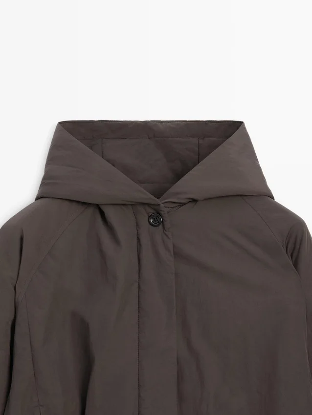 Bomberjacke. Raglanärmel. Verdeckter Reißverschluss mit geknöpfter Leiste. Mit Kapuze. Verstellbarer, elastischer Saum. Zwei Seitentaschen. Wasserabweisendes Material.