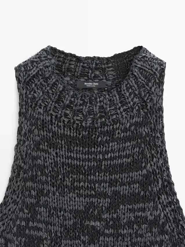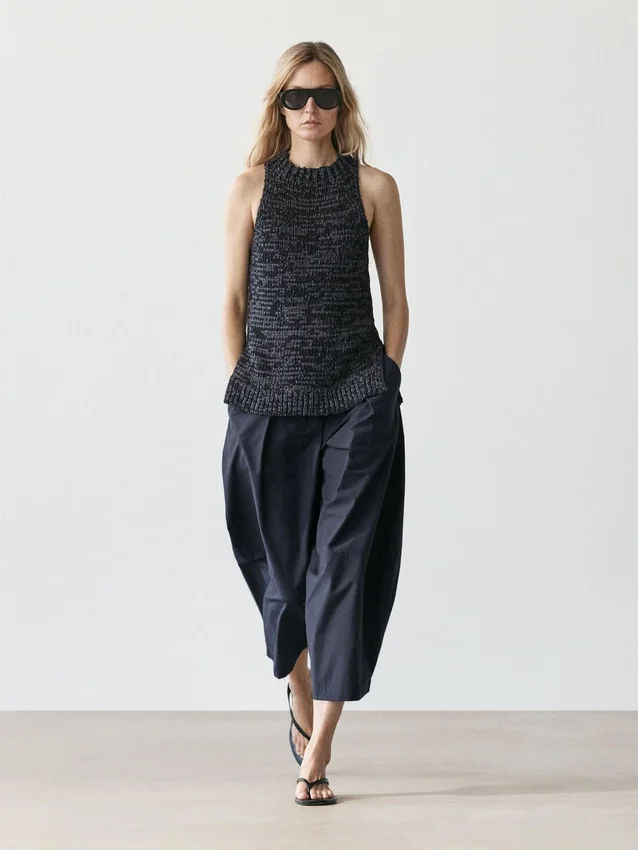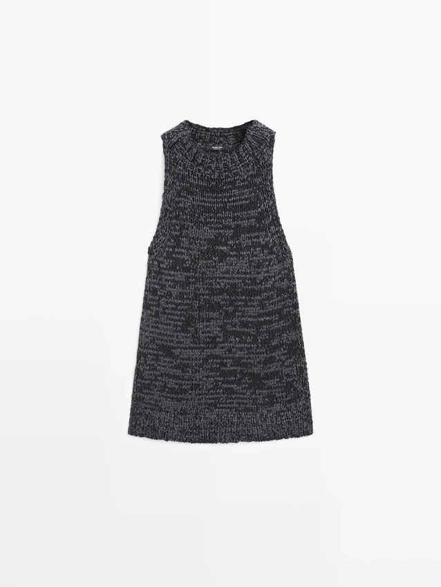 Oberteil aus Baumwollmischgewebe. Neckholder-Ausschnitt. Ärmellos. Seitliche Schlitze. Meliertes Finish.