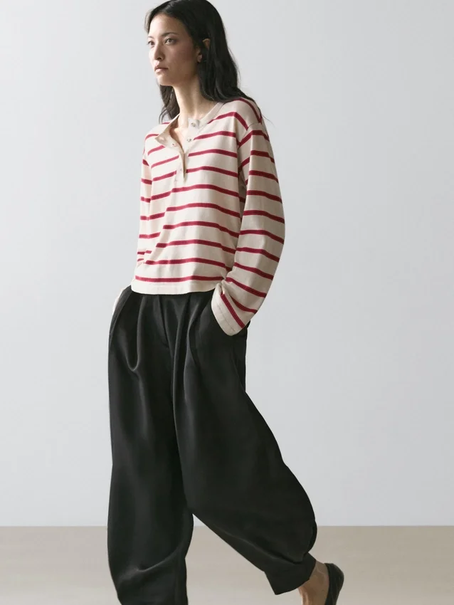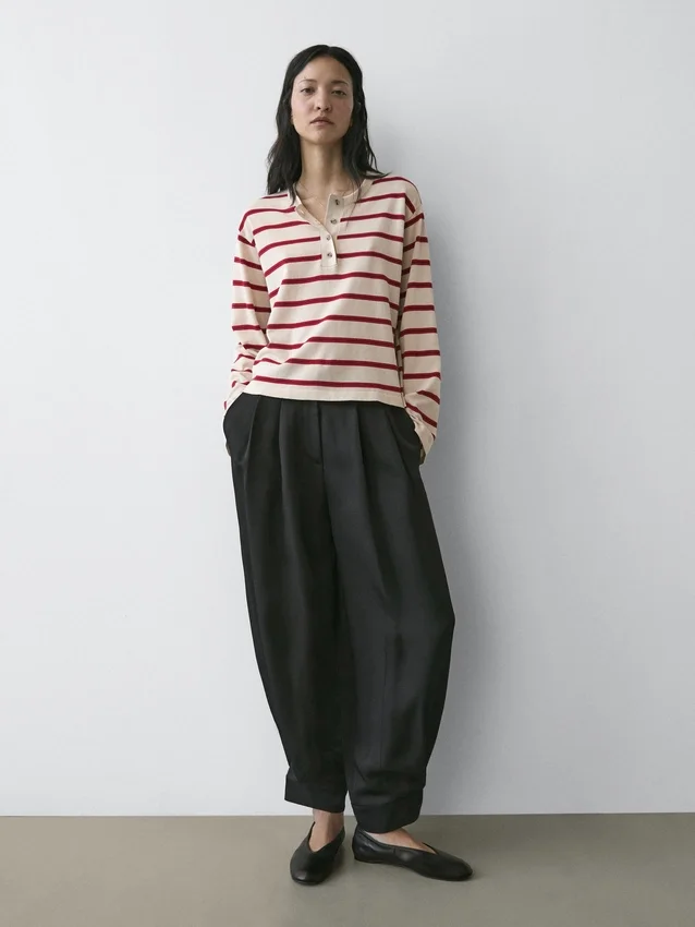 Pullover aus Baumwollstoff. Lange Ärmel. Rundhalsausschnitt mit Knöpfen. Gestreifte Details.