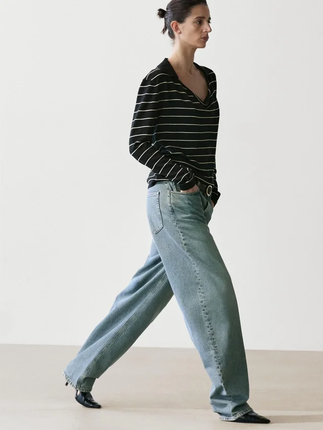 Strickpullover aus Baumwollstoff. Johnny-Kragen. Lange Ärmel. Gerippte Bündchen.