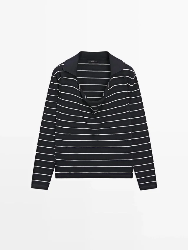 Schreiben Sie die erste Rezension für «Gestreiftes Poloshirt aus Baumwollstrick»