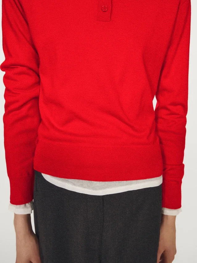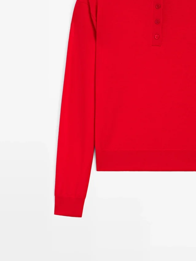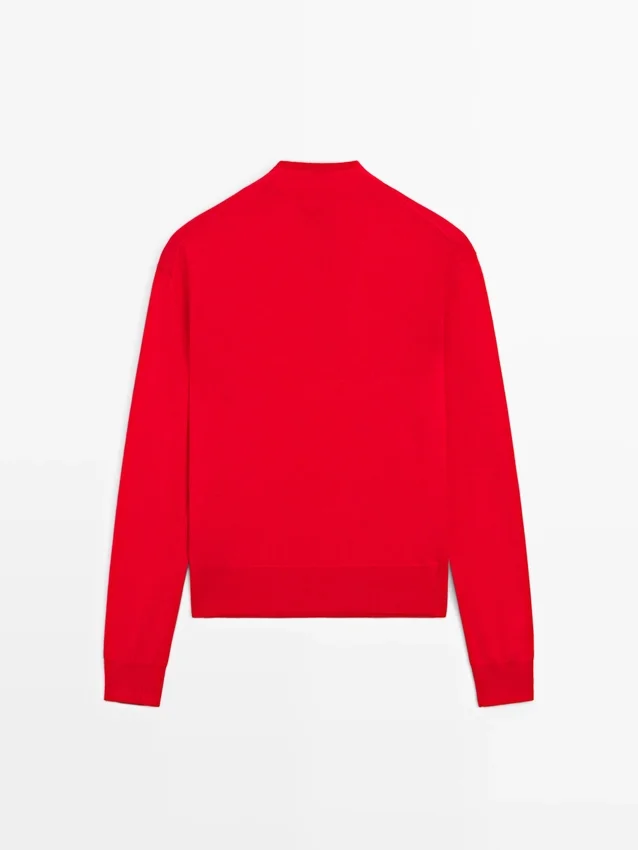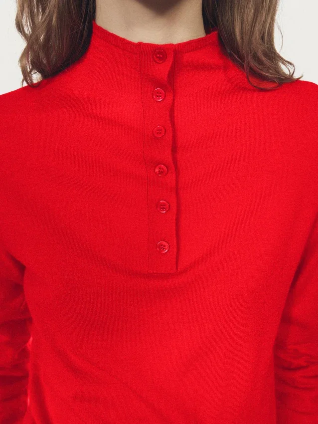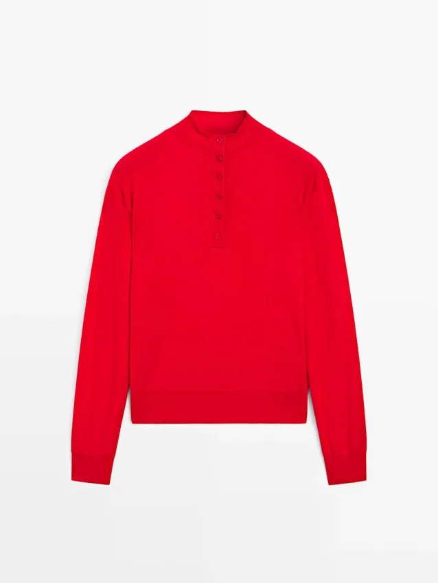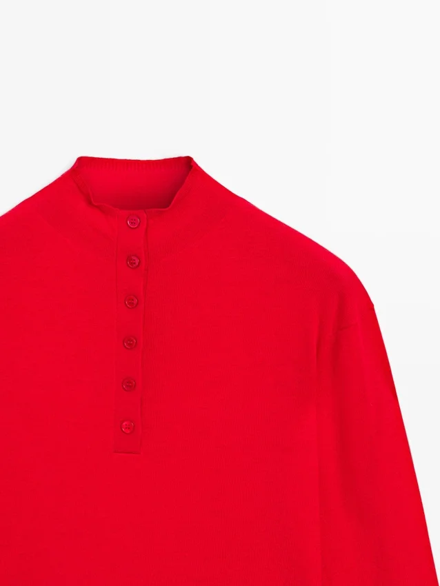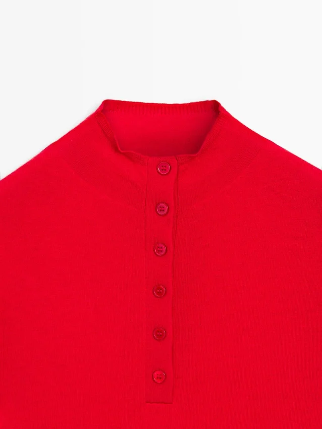 Strickpullover aus Wollmischung. Rollkragen. Lange Ärmel. Knopfleiste vorne. Gerippte Bündchen.