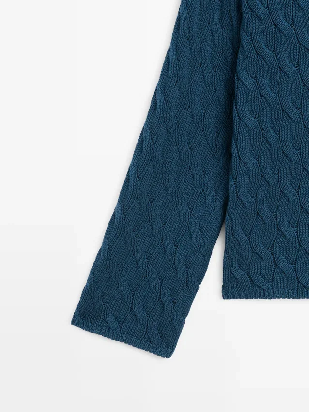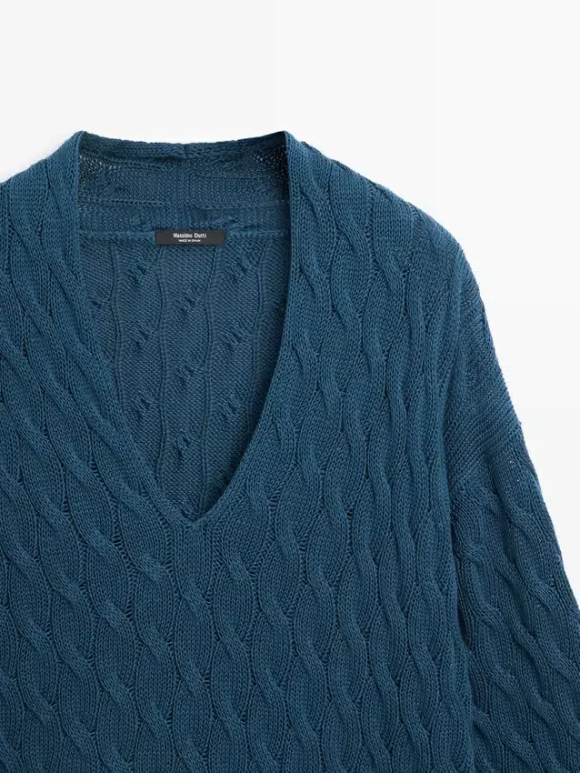 V-Ausschnitt. Lange Ärmel. Gerippte Bündchen. Geflochtene Details.