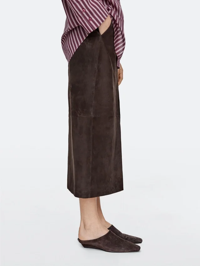 Aus Rindsleder mit Wildleder-Finish. Offen an der Ferse. Lederfutter und -innensohle. Keilabsatz. Absatz: 2,5 cm.