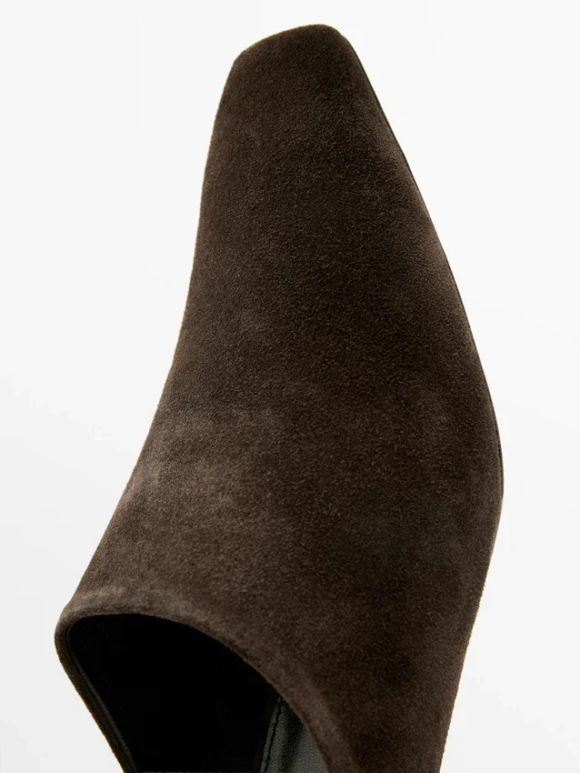Hergestellt aus Rindsleder mit Wildleder-Finish. Offen an der Ferse. Lederfutter und -innensohle. Keilabsatz. Absatz: 2,5 cm.