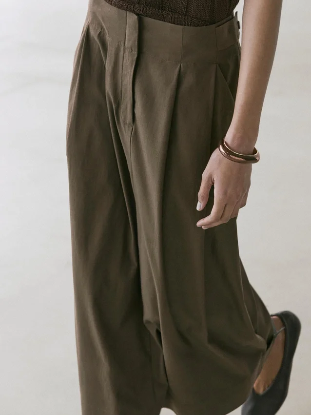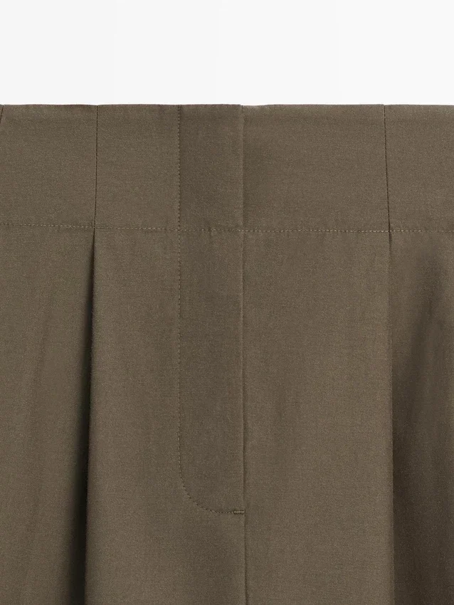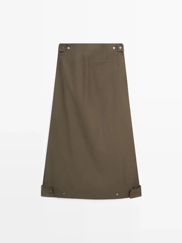 Midirock aus Baumwollmischung. Schärpendetail an der Taille. Reißverschluss, verdeckt durch eine Blende, mit Haken- und Ösenverschluss und Knopf.