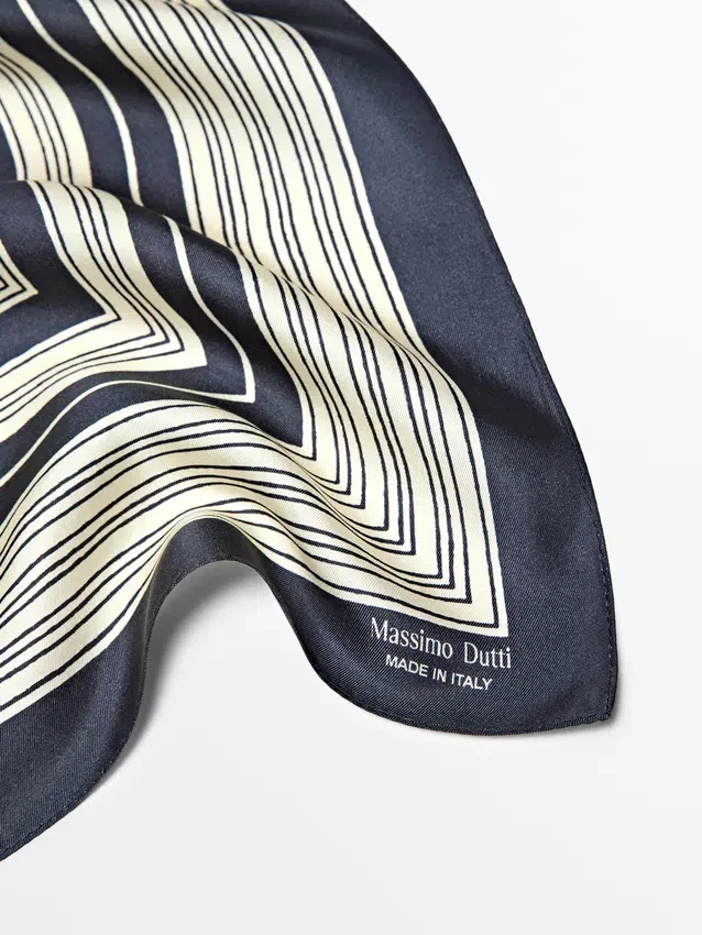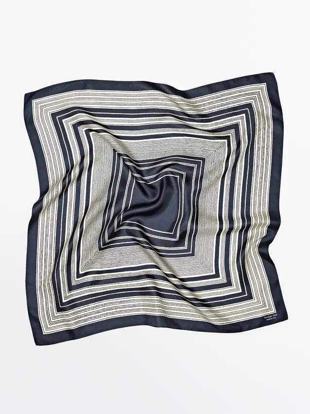 Schal aus 100 % Seidengarn. Gestreiftes Muster. Fließender und leichter Stoff.