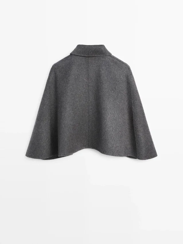 Cape aus Wollmischung. Hemdkragen. Verschluss mit Knöpfen und verdeckten Knopfleisten.