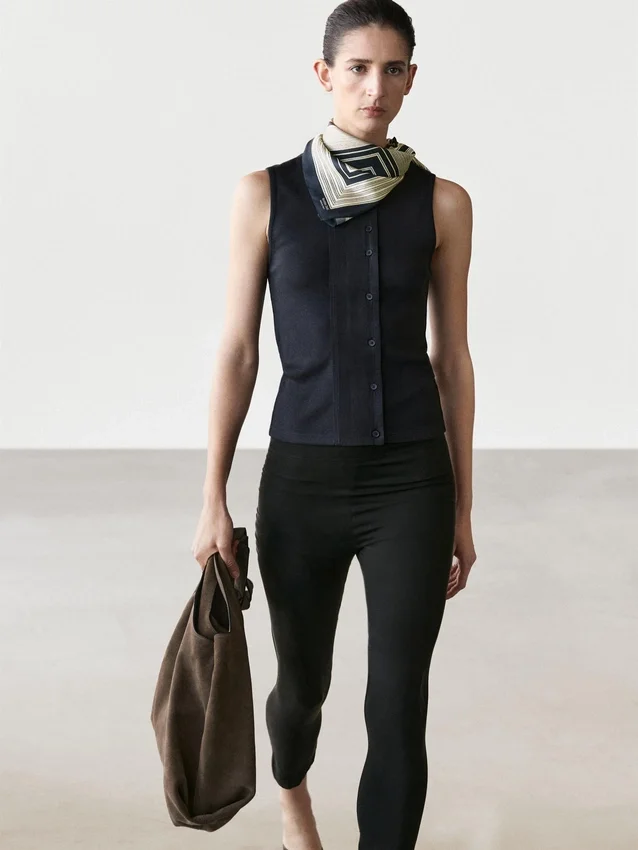 Oberteil aus Baumwollmischgewebe. Rundhalsausschnitt. Ärmellos. Knopfverschluss an der Seite.