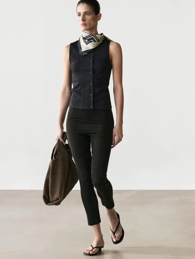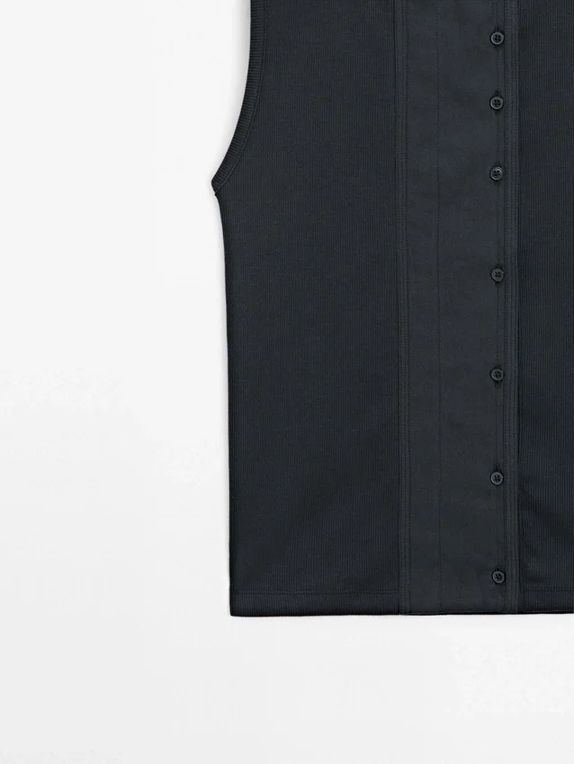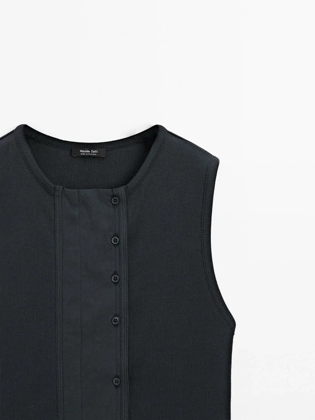 Oberteil aus Baumwollmischgewebe. Rundhalsausschnitt. Ärmellos. Knopfleiste an der Seite.Materialzusammensetzung