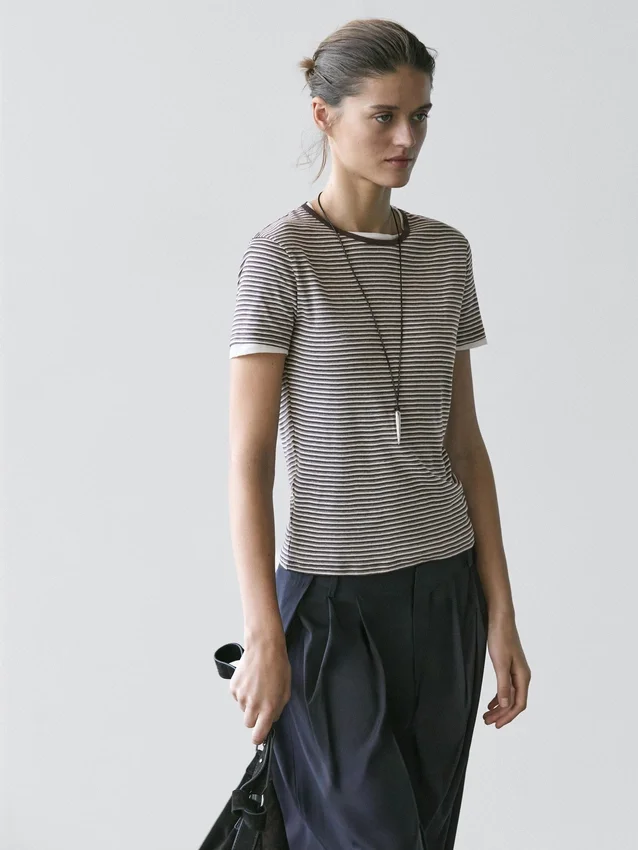 Schreiben Sie die erste Rezension für «Gestreiftes, doppellagiges T-Shirt mit kurzen Ärmeln»