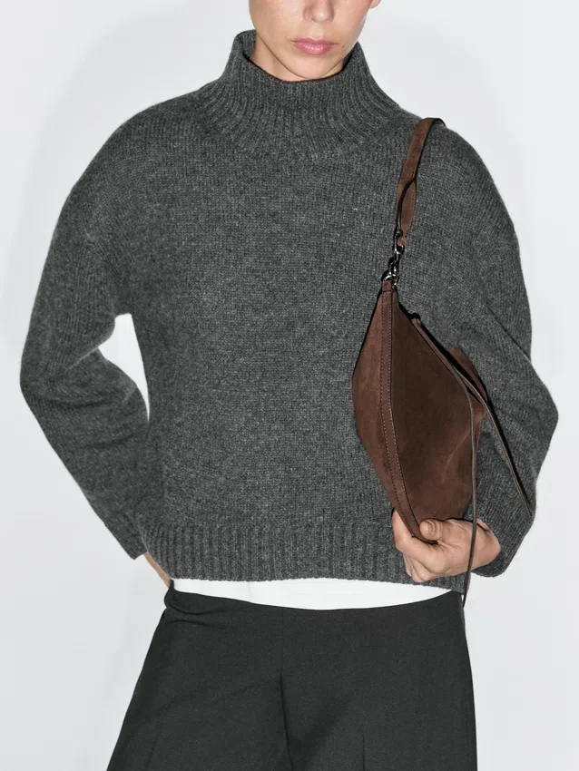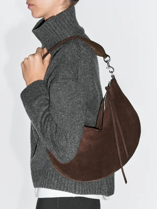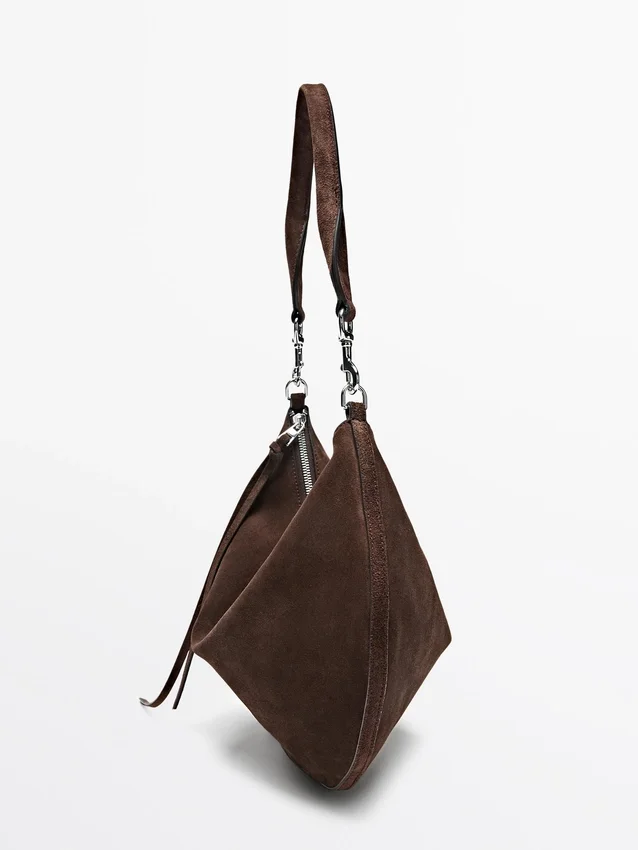 Handtasche aus Rindsleder mit Spaltleder-Finish. Ein Griff/Schulterriemen. Reißverschluss. Hauptfach. Verschluss mit Lederlasche.