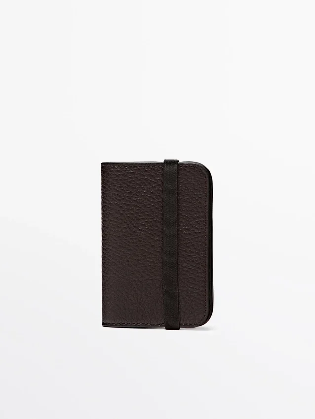 Kartenetui aus Rindsleder mit Nappaleder-Finish. Elastischer Verschluss. Mit 3 Fächern.
