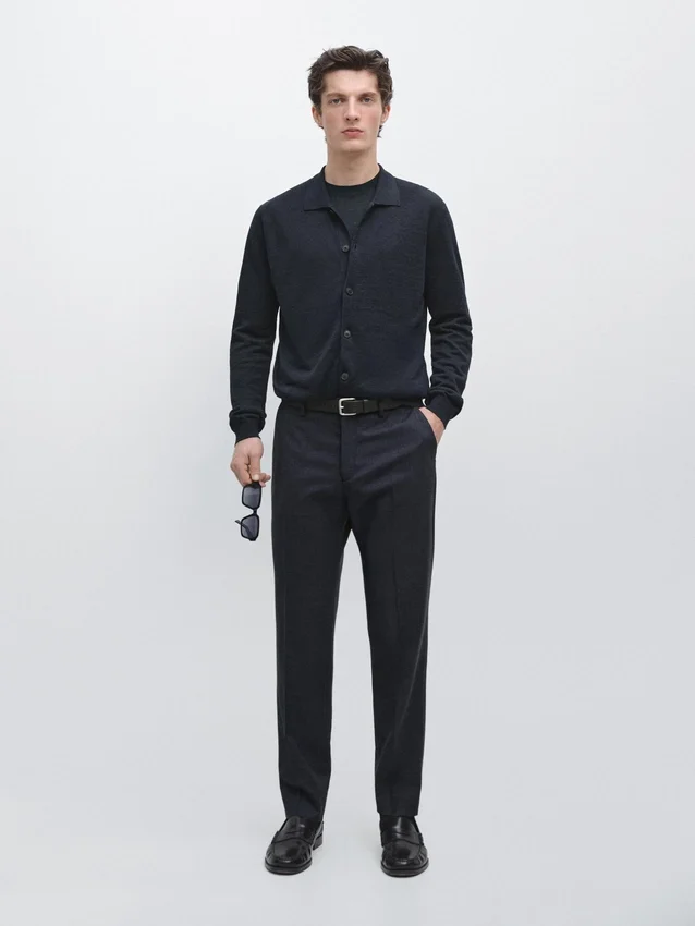 Anzughose aus 100 % Wolle als Hauptstoff. Bund mit Gürtelschlaufen. Reißverschluss und Knopfverschluss vorne. Zwei Seitentaschen. Zwei geknöpfte Paspoiltaschen hinten. Cool Wool: Leichter, atmungsaktiver und knitterfreier Stoff. Dieses Kleidungsstück ist Teil eines Anzugs.