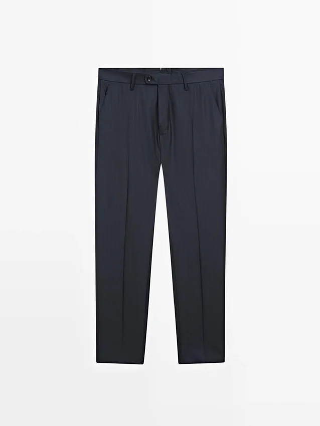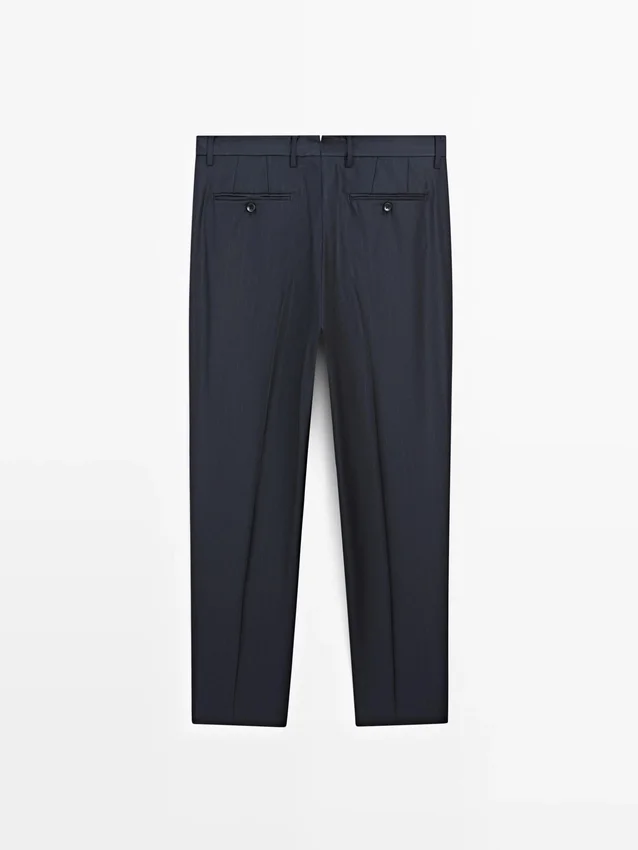 Anzughose aus 100 % Wolle als Hauptstoff. Reißverschluss, verdeckt durch eine Knopfleiste, Knopf und geknöpftes Band. Zwei Seitentaschen. Zwei geknöpfte Paspeltaschen auf der Rückseite. Gestreiftes Detail. Cool Wool: Leichter, atmungsaktiver und knitterfreier Stoff. Dieses Kleidungsstück ist Teil eines Anzugs.