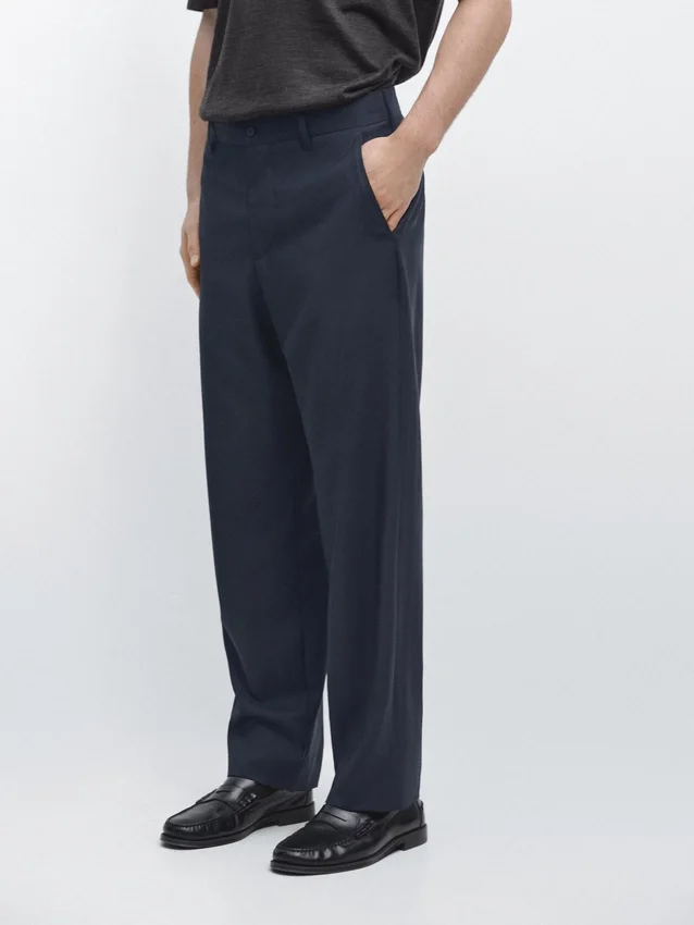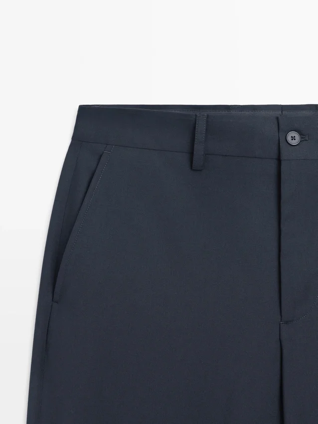 Anzughose aus 100 % Wolle als Hauptstoff. Bund mit Gürtelschlaufen. Reißverschluss, verdeckt durch eine Blende, Knopf und geknöpften Riemen. Zwei Seitentaschen. Zwei geknöpfte Paspoiltaschen auf der Rückseite. Cool Wool: Leichter, atmungsaktiver und knitterfreier Stoff. Dieses Kleidungsstück ist Teil eines Anzugs.