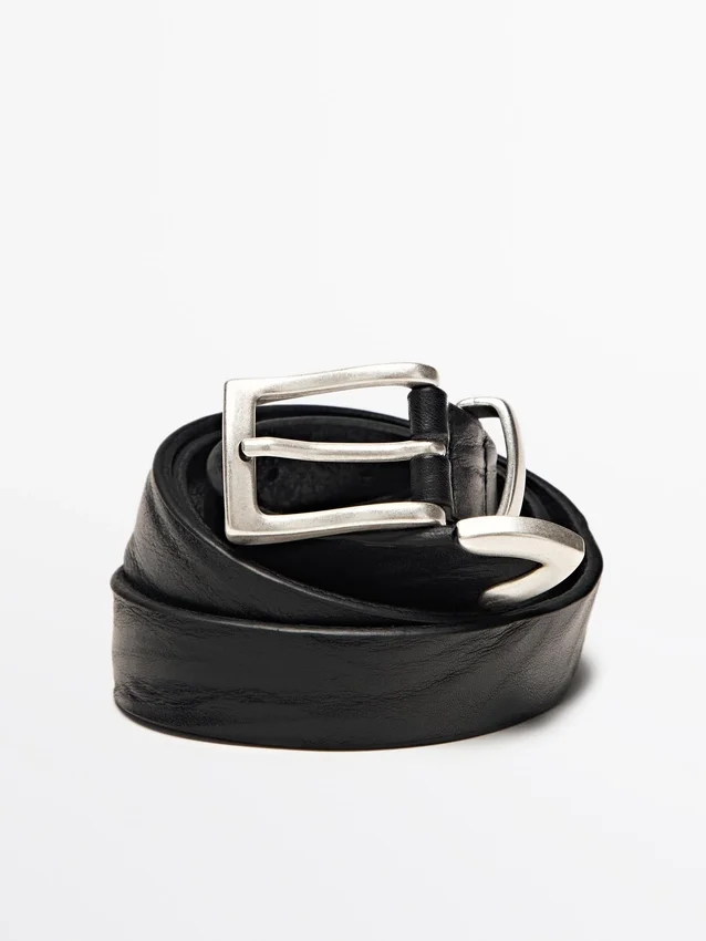 Gürtel aus Rindsleder mit Nappa-Finish. 2,5 cm breit. Rechteckige Metallschnalle. Metallspitze.
