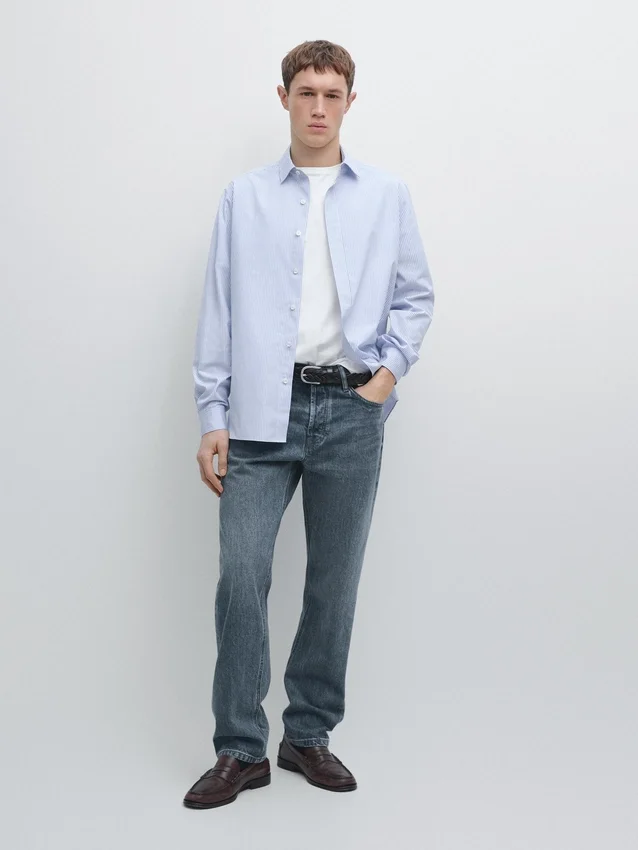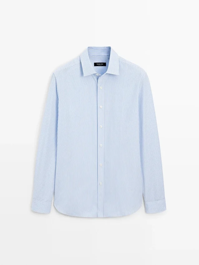 Regular Fit: Diese Passform bietet Komfort mit etwas mehr Platz im Oberkörper- und Armbereich und sorgt für einen klassischen, aber dennoch entspannten Stil. Lange Ärmel mit geknöpften Manschetten. Hemdkragen. Knopfleiste vorne. Gestreifter Print.