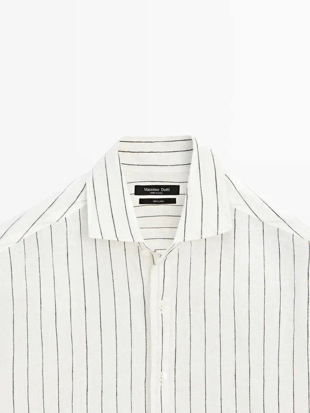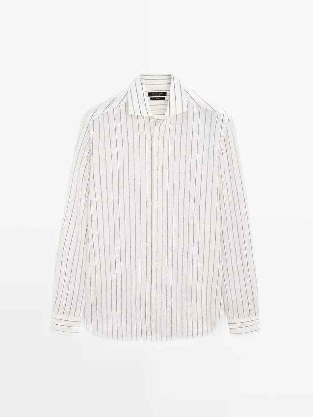 Langarm mit geknöpften Manschetten. Hemdkragen. Durchgehende Knopfleiste. Gestreifter Druck. Aus 100 % Leinen. Extra dünner Stoff.