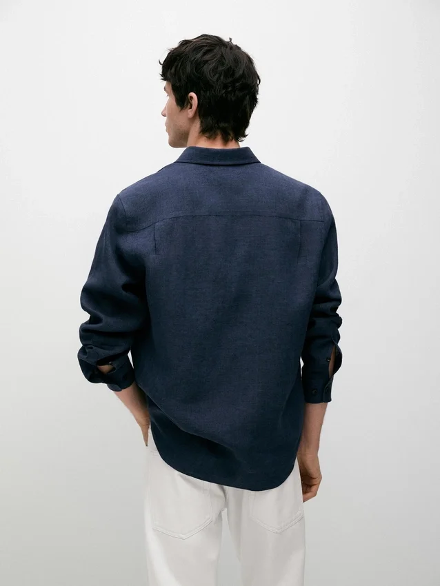 Hemd aus 100 % Leinen. Lange Ärmel mit geknöpften Manschetten. Hemdkragen. Durchgehende Knopfleiste vorne.