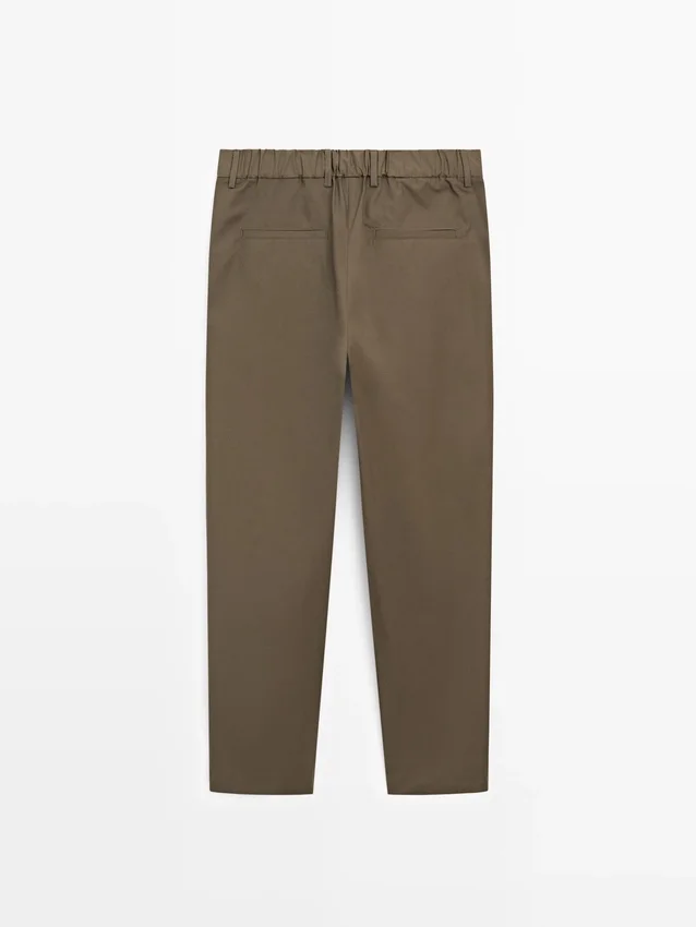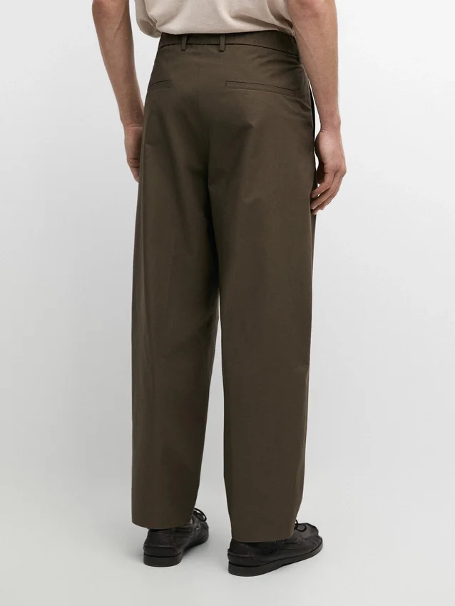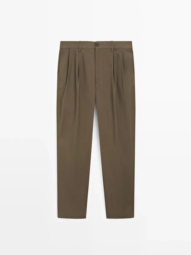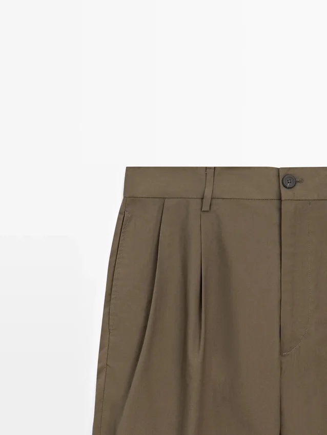 Hosen mit Abnähern. Gürtelschlaufen. Reißverschluss vorne und Knopfverschluss oben. Zwei Seitentaschen. Gefüttert. Doppelte Abnäher an der Vorderseite.