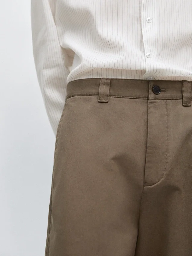 Hose mit lockerer Passform: Diese Passform zeichnet sich durch eine weite und lockere Silhouette an Taille, Hüften und Beinen aus. Hose aus Baumwollstoff. Reißverschluss vorne und Knopfverschluss oben. Zwei Seitentaschen.