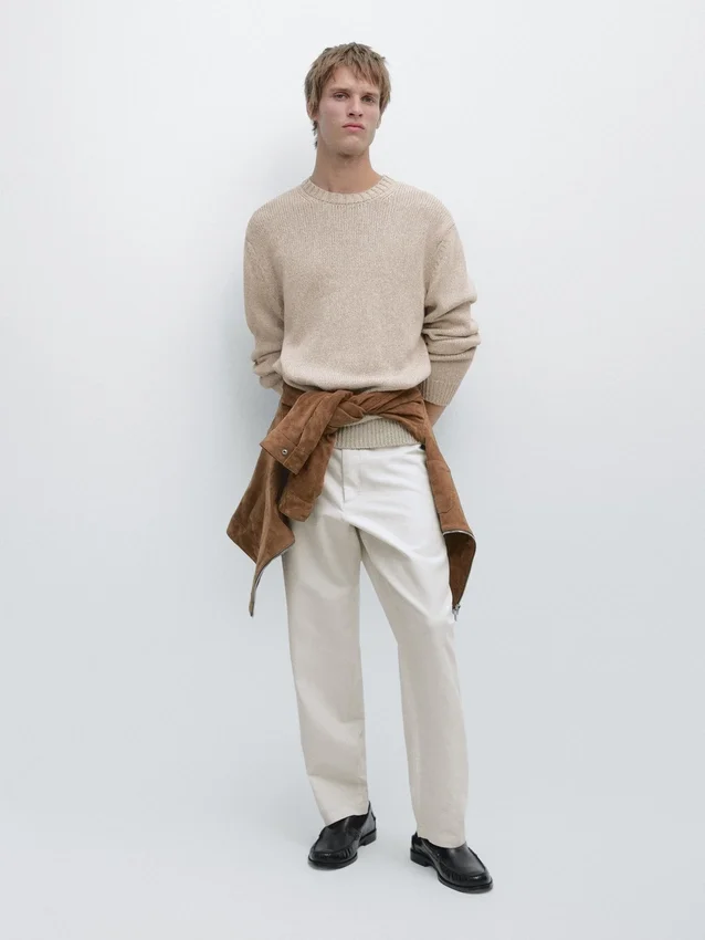 Hose mit konischer Passform: Dieser Schnitt zeichnet sich durch eine lockere Passform an der Taille aus, die sich zur Knöchel hin allmählich verjüngt. Hose aus einem Leinenmischgewebe. Bund mit Gürtelschlaufen. Reißverschluss vorne und Knopfverschluss oben. Seitentasche im Carpenter-Stil.