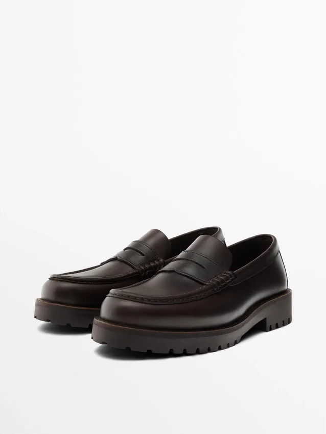 Hergestellt aus Rindsleder. Leicht klobige Sohle. Penny-Riemen. Moc-Toe-Detail. Lederfutter und -innensohle. Hergestellt in Portugal.