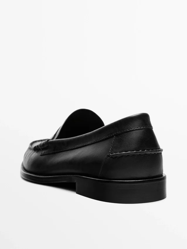 Hergestellt aus weichem Rindsleder. Penny-Riemen-Detail. Lederfutter und -innensohle. Passende Ziernähte. Hergestellt in Portugal.