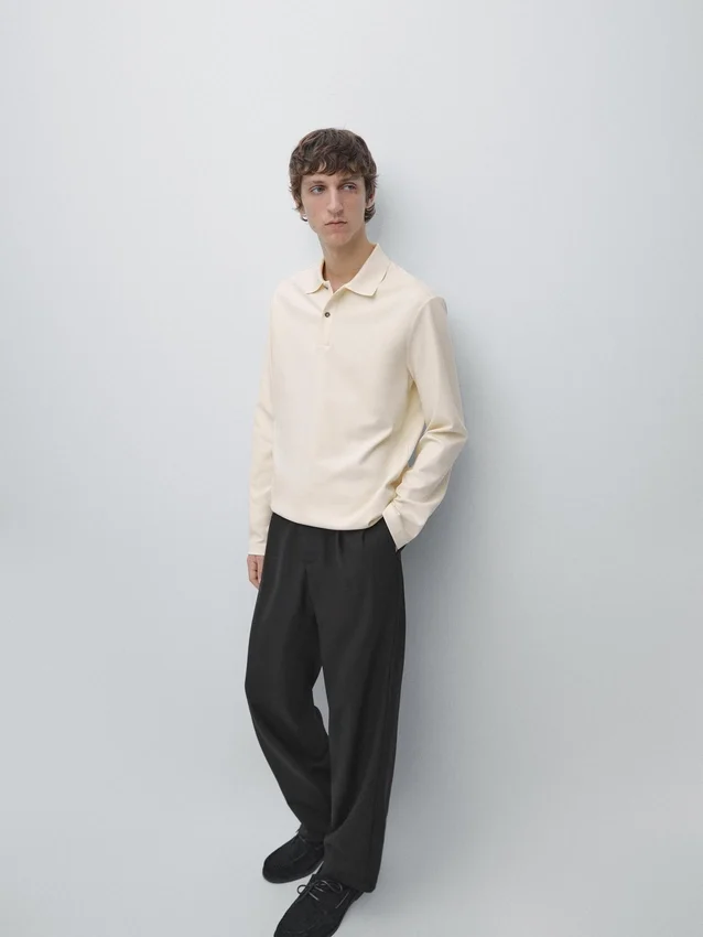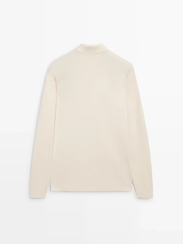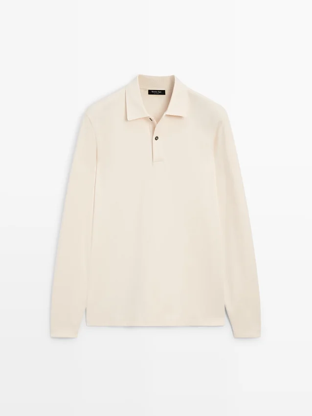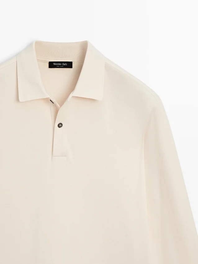 T-Shirt aus Baumwolle. Lange Ärmel. Poloshirt mit Knopfverschluss. Rippdetail am Kragen.