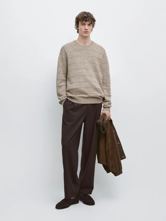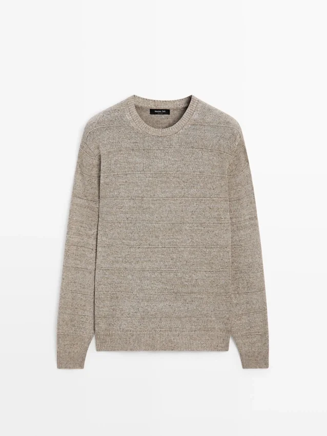 Strickpullover aus Baumwollmischung. Rundhalsausschnitt. Lange Ärmel. Gerippte Bündchen. Gestreifte Details.