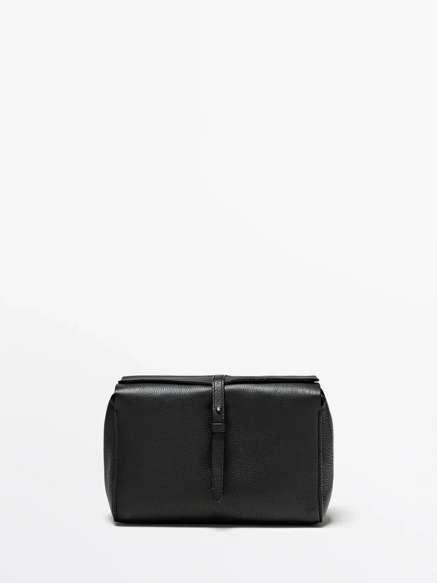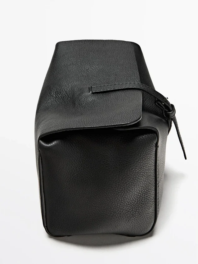 Kulturbeutel aus Rindsleder mit Nappaleder-Finish. Verdeckter Druckknopfverschluss.