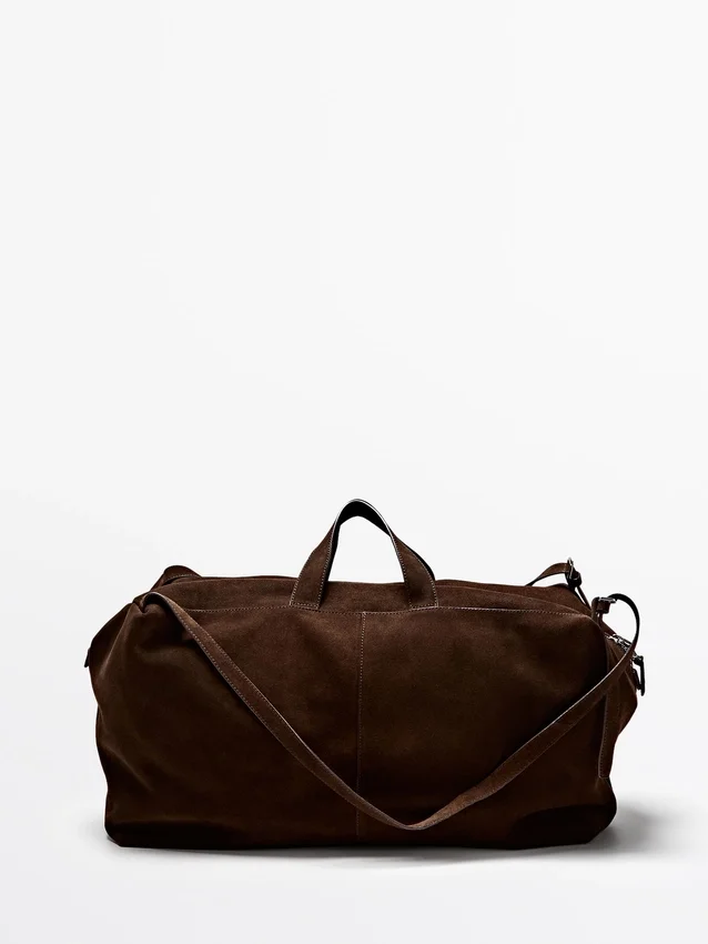 Handtasche aus Rindsleder mit Wildleder-Finish. Mit Zwei-Wege-Reißverschluss. Zwei Handgriffe und ein verstellbarer Schulterriemen. Innentasche mit Reißverschluss. Baumwollfutter.